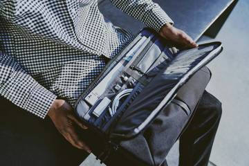 Tech Folio16は、必需品を携帯できるようデザインされた ラップトップケースです。2つのコンパートメントにラップトップとテックアクセサリーを入れて保護できる、スリムなデザインです。