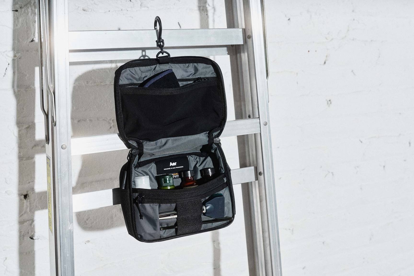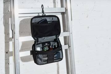 Shop Best SellersTravel Kit 2は、洗面用具を収納できるようデザインされ ています。耐水性の生地を使用しており、多数のポケッ トや収納可能なフックも備わっているので、吊り下げて使用することも可能です。